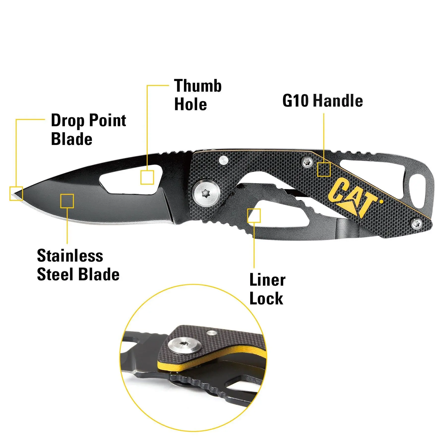 Il telaio e l’impugnatura sono realizzati in alluminio robusto e sottile con una finitura in G10 che fornisce una superficie antiscivolo e antiaderente. Questo rende il coltello più facile e sicuro da impugnare in tutte le condizioni. Grazie al ritaglio per il pollice, il coltello può essere aperto con una sola mano. Particolarmente utili sono il fermaglio e la clip, grazie ai quali potrete fissare il coltello alla cintura.