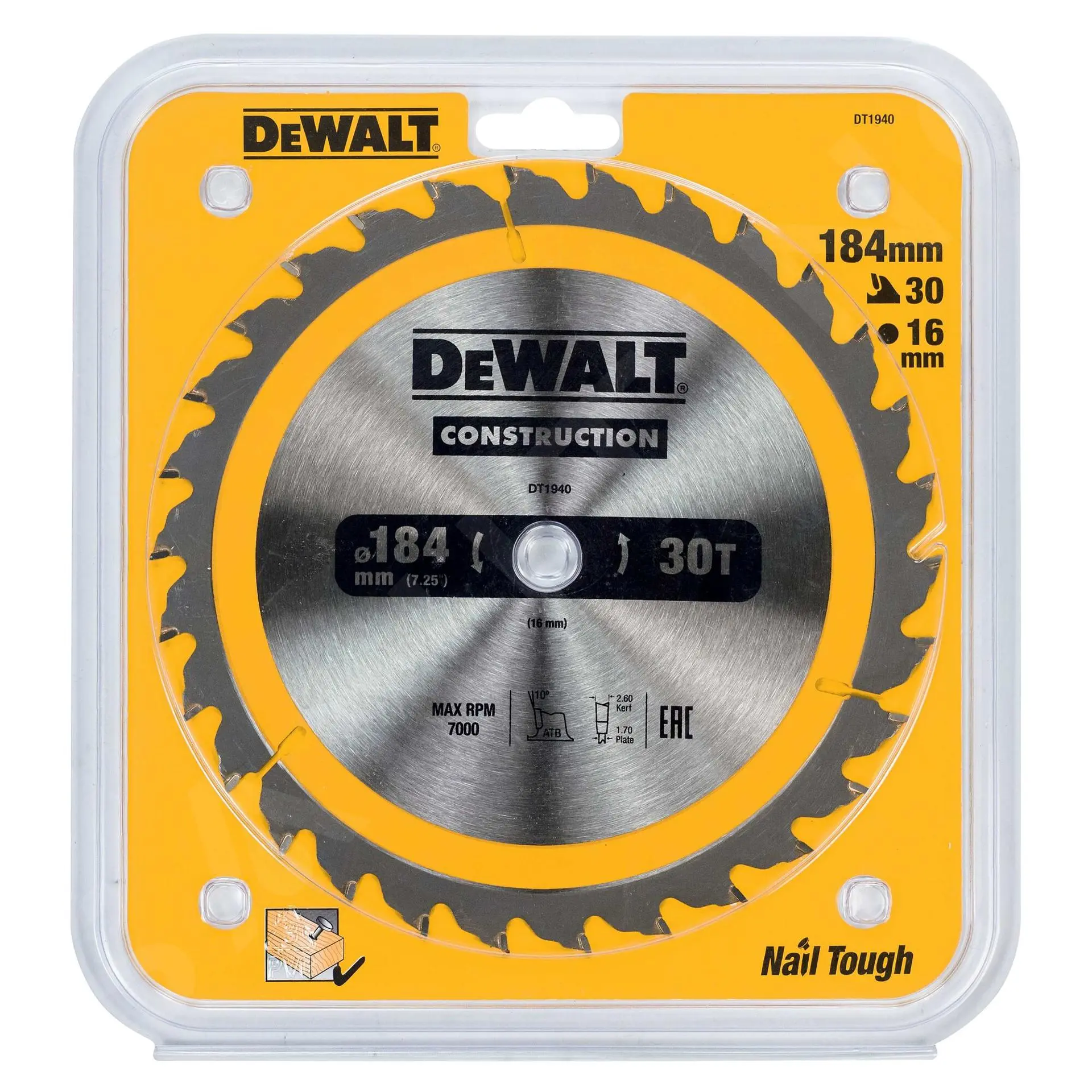 DeWALT Accessori – Lama Da Taglio 184 X 16 Mm, 30 Denti DT1940