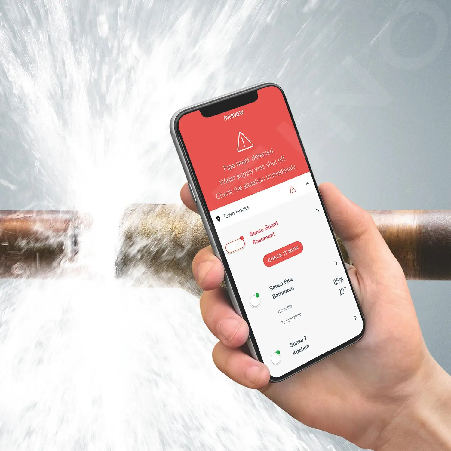 L’unità centrale intelligente Sense Guard riconosce le perdite d’acqua e arresta immediatamente la fornitura d’acqua, prevenendo allagamenti a casa.