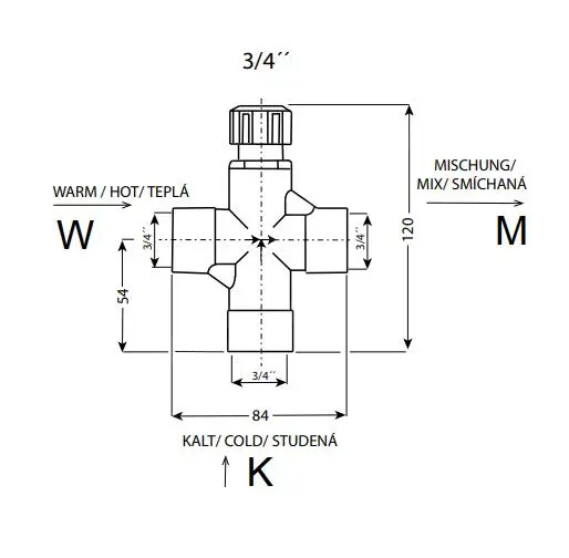 - SLT 04 è una valvola termostatica di miscelazione da 3/4″