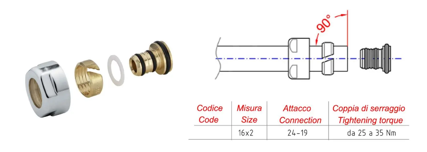 Raccordo a compressione progettato per il collegamento dei radiatori ai tubi Alupex.