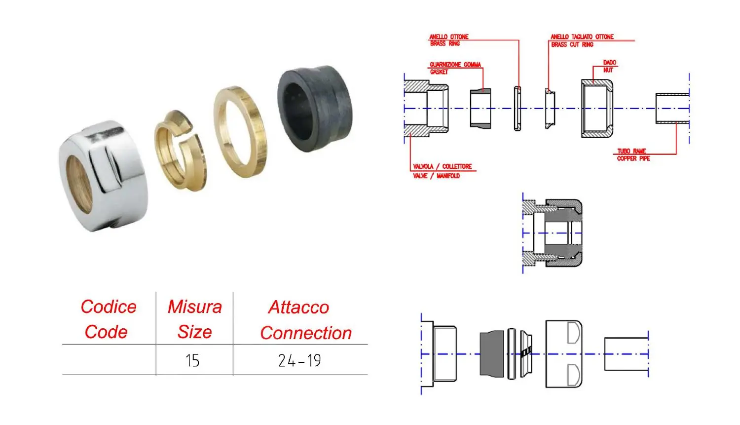 Raccordo a compressione progettato per il collegamento dei radiatori ai tubi di rame.
