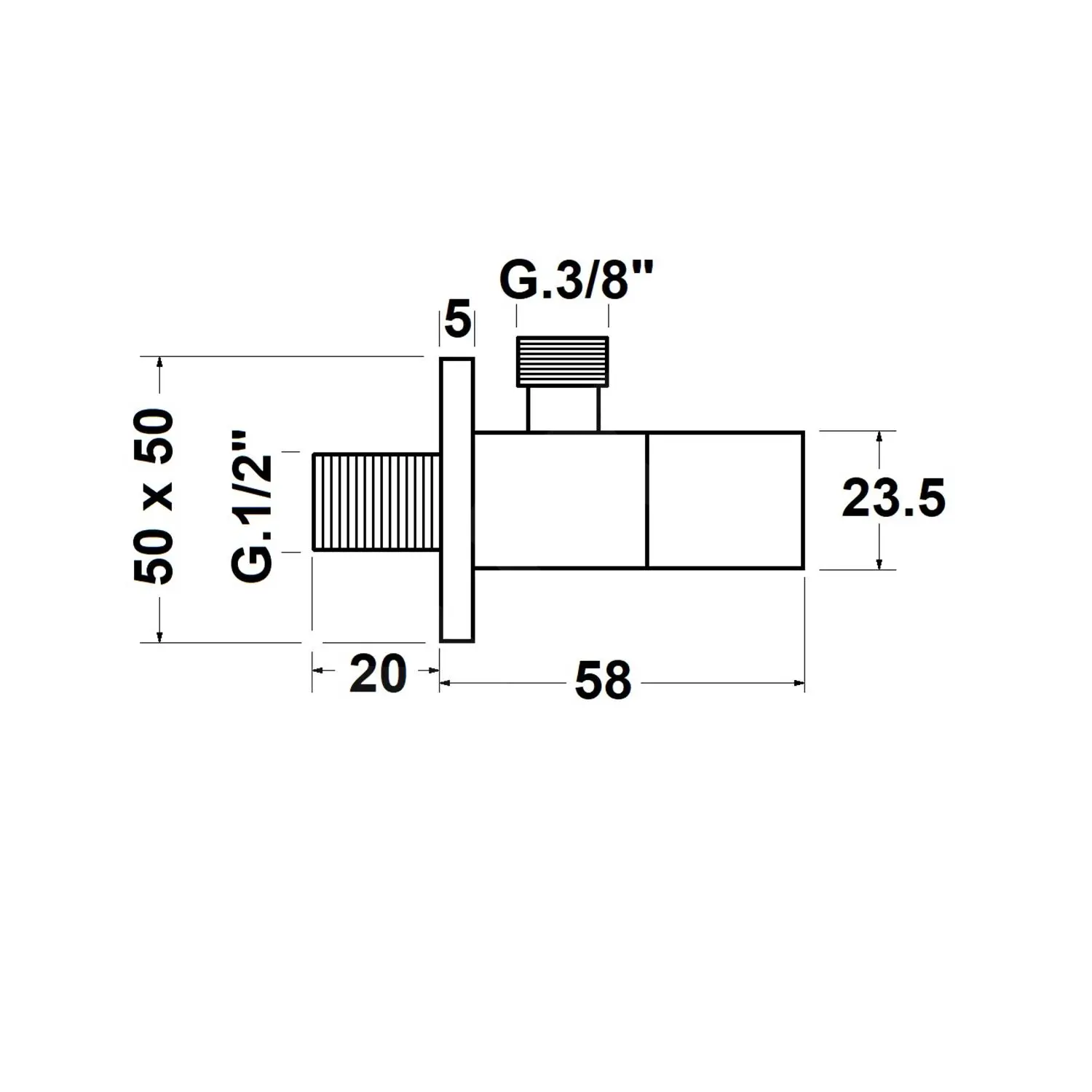 Valvola a gomito con rosetta, quadrata